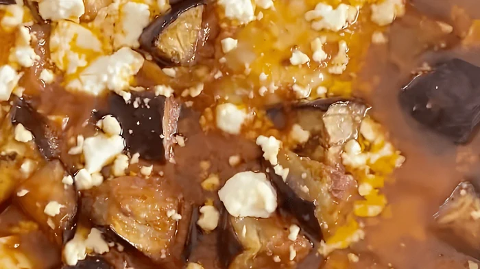 - Polvilhe generosamente o prato com queijo feta esmigalhado antes de servir.