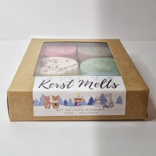 Kerst Melts (175 gram) - 100 uur geurplezier - Bevat de geuren: Witte Kerst, Kerstkoekjes, Kerstboom, Kerstzuurstok, Glühwein en Kerstpudding - Geschenkverpakking